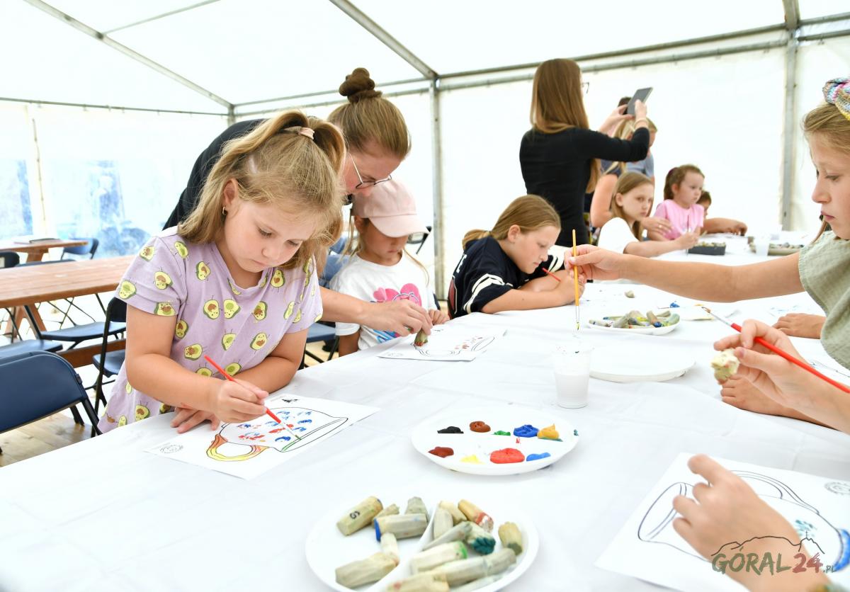 Tego dnia festiwalowa przestrzeń wypełniła się zapachem gliny i rytmem stempelków – uczestnicy warsztatów Manufaktury Bolesławiec mieli okazję tworzyć własne naczynia, poznając sekrety tej wyjątkowej techniki zdobienia. Dzieci dekorowały kartki inspirowane słynnymi motywami, a dorośli odkrywali magię rzemiosła i kolorowych wzorów.