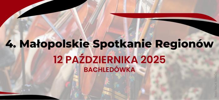 Małopolskie Centrum Kultury SOKÓŁ wraz z Miastem i Gminą Czarny Dunajec serdecznie zapraszają mieszkańców oraz gości na 4. Małopolskie Spotkanie Regionów. W niedzielę 12 października 2025 roku na Bachledówce odbędzie się spotkanie zespołów regionalnych z całej Małopolski.