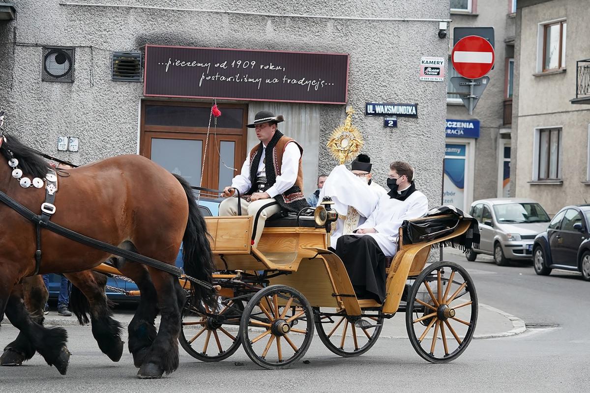 Parafia Najświętszego Serca Pana Jezusa w Nowym Targu zorganizowała dzisiaj, w Niedzielę Miłosierdzia przejazd ulicami miasta z Najświętszym Sakramentem. Błogosławieństwo domówi i wiernych rozpoczęło się przed godz. 16.00.