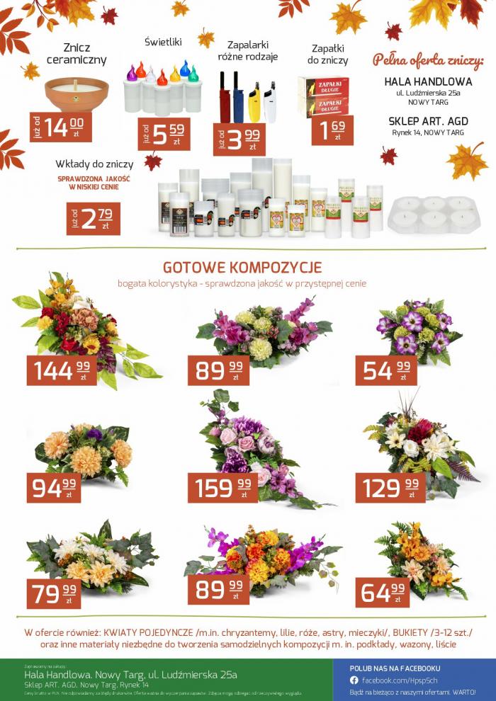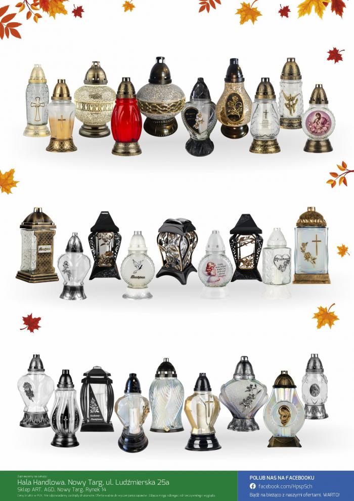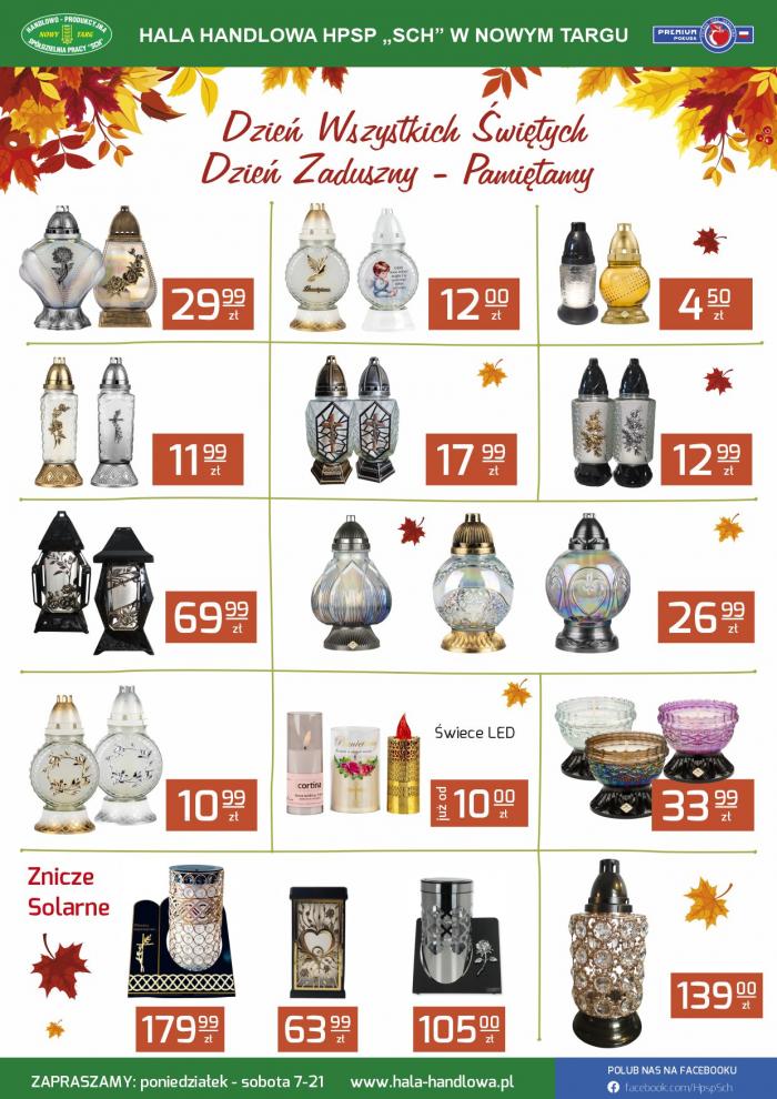 Hala Handlowa z siedzibą przy ul. Ludźmierskiej 25a w Nowym Targu przygotowała na ten szczególny czas bogatą ofertę produktów związanych z obchodami Dnia Wszystkich Świętych. W asortymencie znajduje się szeroki wybór zniczy obejmujących kilkadziesiąt wzorów, które wyróżniają się wysoką jakością, estetycznym wykonaniem oraz przystępną ceną.