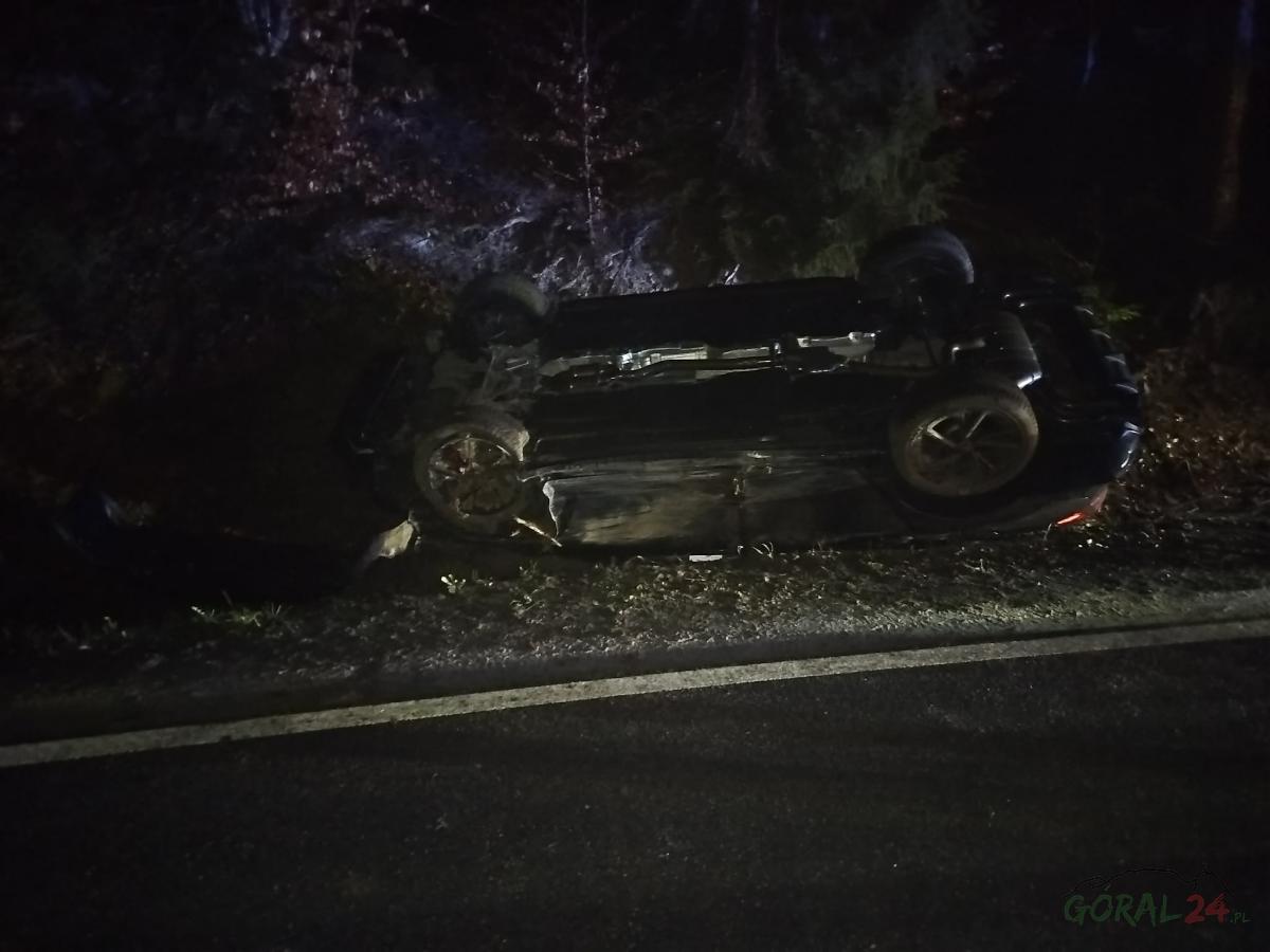 W nocy w Knurowie doszło do zdarzenia drogowego z udziałem samochodu osobowego. Pojazd wypadł z drogi i dachował.