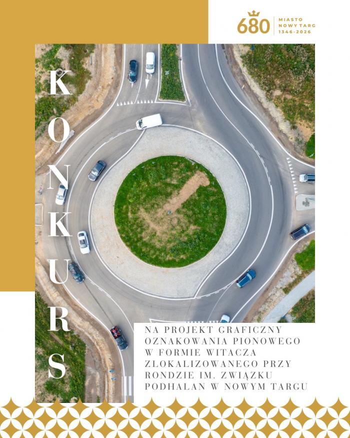 Do piątku 24 kwietnia 2026 roku można składać prace w konkursie na projekt graficzny oznakowania pionowego w formie witacza, który ma stanąć przy rondzie im. Związku Podhalan w Nowym Targu.