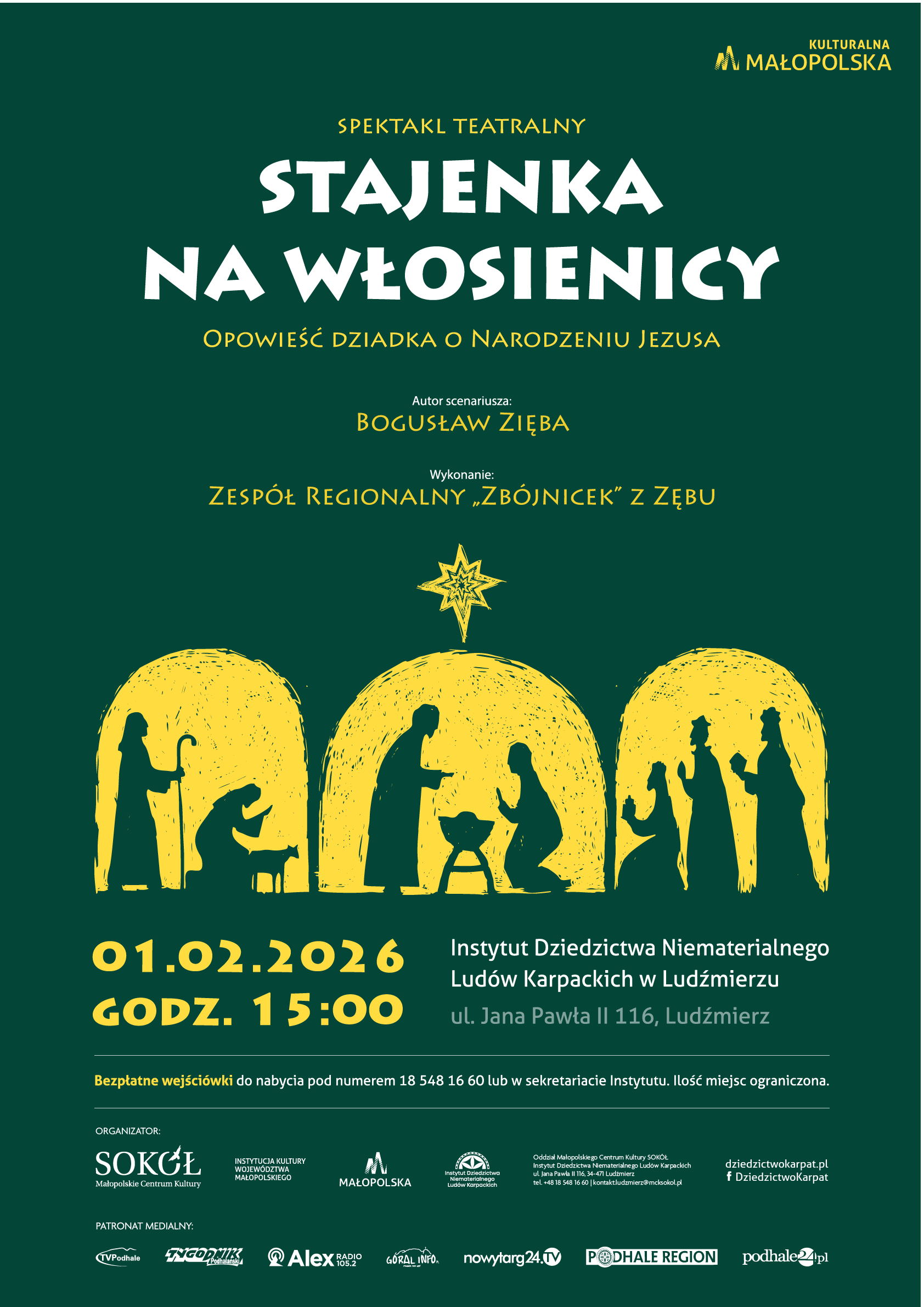 Opowieść dziadka o narodzeniu Jezusa, Małopolskie Centrum Kultury SOKÓŁ zaplanowało dodatkowy pokaz widowiska. Wydarzenie odbędzie się w niedzielę 1 lutego 2026 roku w siedzibie Instytutu Dziedzictwa Niematerialnego Ludów Karpackich w Ludźmierzu.