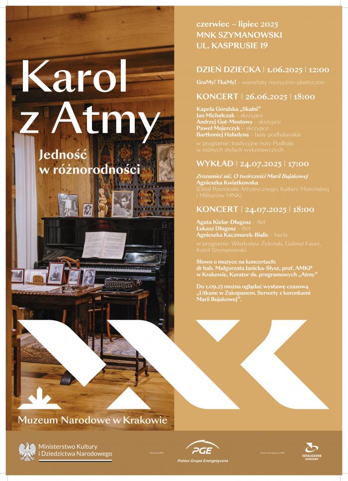 Podczas koncertu w Atmie artyści zaprezentują tradycyjną muzykę Podhala w różnych stylach, z dbałością o autentyczność i detale charakterystyczne dla dawnych kapel góralskich. W programie wieczoru przewidziano także krótkie wprowadzenie słowne o muzyce góralskiej w ujęciu Karola Szymanowskiego, które wygłosi dr hab. Małgorzata Janicka-Słysz, prof. AMKP w Krakowie i kurator ds. programowych Atmy.