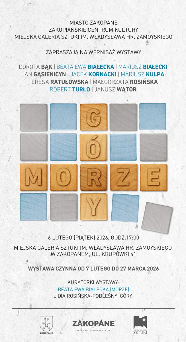 Miejska Galeria Sztuki w Zakopanem zaprasza na wystawę pod tytułem Góry - Morze - Morze - Góry, która zostanie zaprezentowana w przestrzeni galerii przy ulicy Krupówki 41. Ekspozycja będzie dostępna dla zwiedzających od 7 lutego do 27 marca 2026 roku i stanowi propozycję skierowaną do miłośników sztuki współczesnej oraz wszystkich osób zainteresowanych dialogiem pomiędzy różnymi krajobrazami i wrażliwościami artystycznym