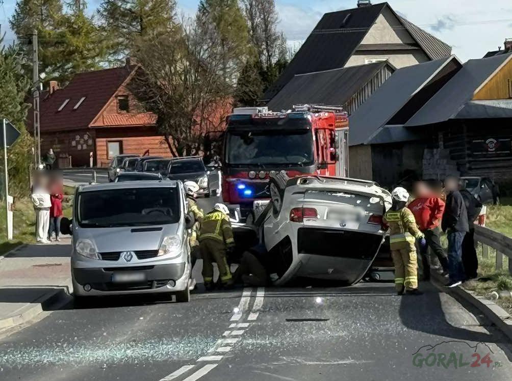 Nieopodal miejscowej remizy w kierunku Jabłonki zderzyły się trzy samochody, a jeden z nich dachował