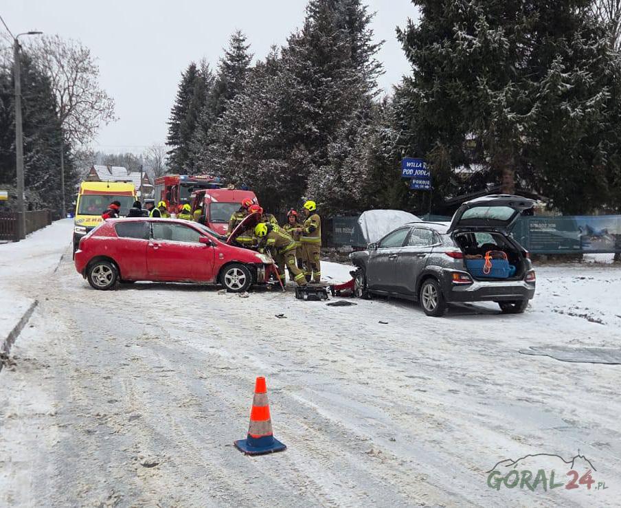 Do groźnie wyglądającego wypadku doszło w niedzielny poranek, 15 lutego, na ulicy Tatrzańskiej w Poroninie. O godzinie 7.10 służby ratunkowe zostały zadysponowane do zdarzenia z udziałem dwóch samochodów osobowych.