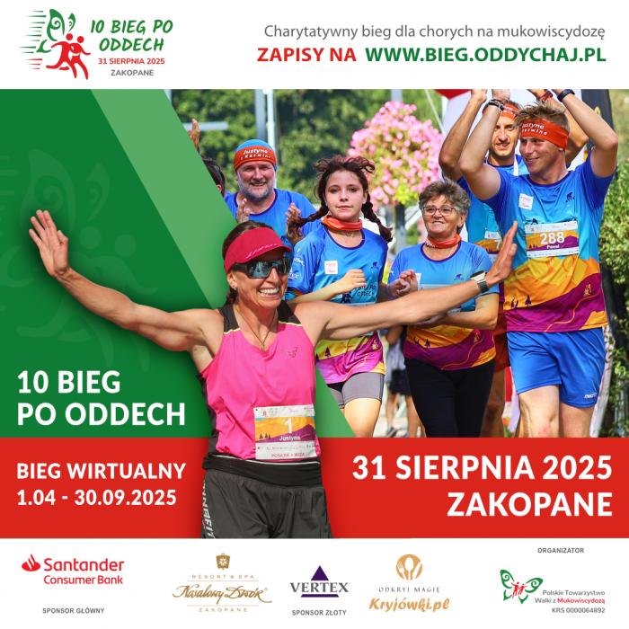 W niedzielę 31 sierpnia ulicami Zakopanego po raz dziesiąty odbędzie się Bieg po Oddech – charytatywne wydarzenie organizowane z myślą o osobach zmagających się z mukowiscydozą. W jubileuszowej edycji weźmie udział ponad 1500 biegaczy.