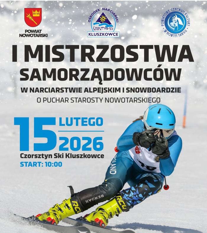 W dniu 15 lutego 2026 roku w Ośrodku Narciarskim Czorsztyn Ski w Kluszkowcach odbędą się I Mistrzostwa Samorządowców w Narciarstwie Alpejskim i Snowboardzie o Puchar Starosty Nowotarskiego.
