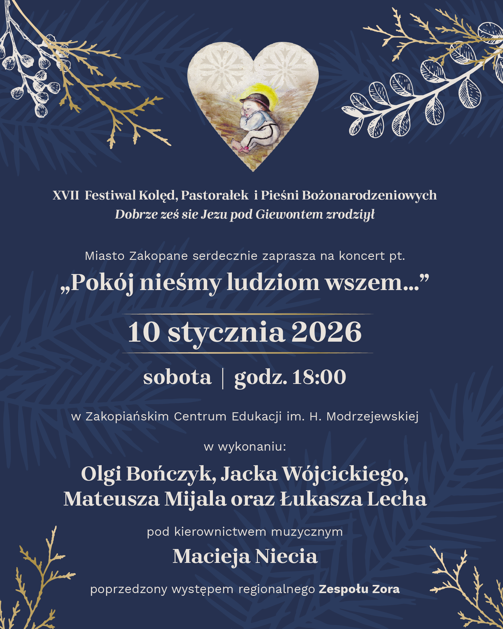 W sobotę 10 stycznia 2026 roku o godzinie 18.00 w Zakopiańskim Centrum Edukacji imienia Heleny Modrzejewskiej odbędzie się wyjątkowy koncert kolędowy zatytułowany 'Pokój nieśmy ludziom wszem".