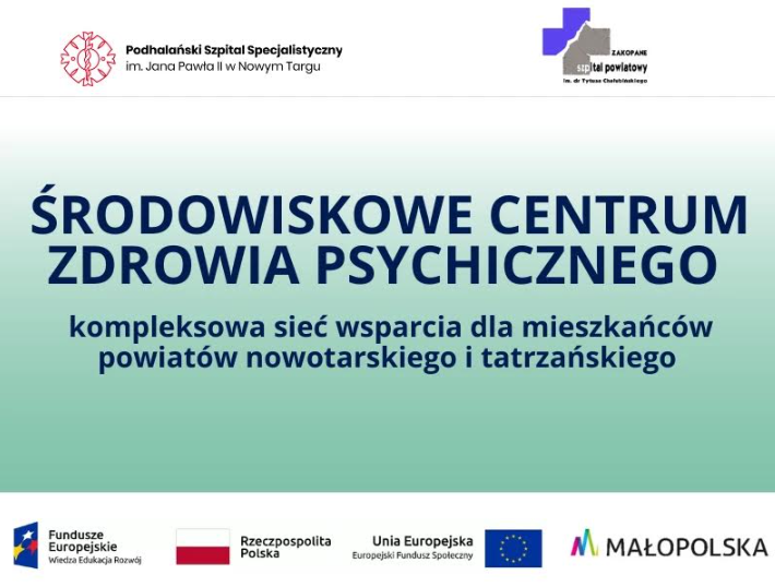 Podhalański Szpital Specjalistyczny im. Jana Pawła II w Nowym Targu we współpracy ze Szpitalem Powiatowym im. dr Tytusa Chałubińskiego w Zakopanem jako partnerem projektu rozpoczyna realizację Środowiskowego Centrum Zdrowia Psychicznego.