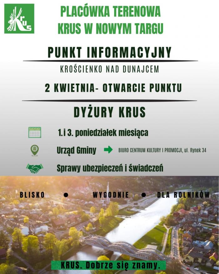 Placówka będzie funkcjonować w Urzędzie Gminy Krościenko nad Dunajcem, w biurze zlokalizowanym w Centrum Kultury i Promocji, jako część Placówki Terenowej KRUS w Nowym Targu.