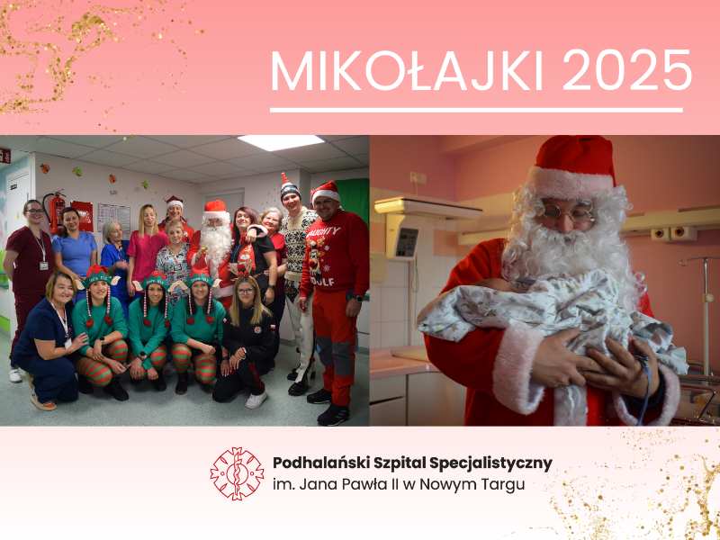 5 grudnia 2025 roku Podhalański Szpital Specjalistyczny im. Jana Pawła II w Nowym Targu odwiedził Święty Mikołaj, przynosząc dzieciom radość, uśmiech i odrobinę świątecznej magii. Jak co roku, Mikołaj zawitał na Oddział Pediatryczny oraz na Oddział Noworodków i Wcześniaków, gdzie ciepłym gestem i dobrym słowem dodał otuchy najmłodszym pacjentom oraz ich rodzinom.