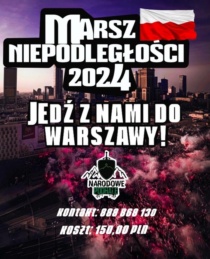 Działacze Narodowego Podhala, podobnie jak w latach poprzednich, organizują wyjazd autokarem na Marsz Niepodległości, który odbędzie się 11 listopada 2024 roku w Warszawie.