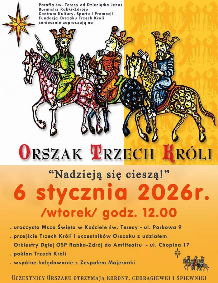 Orszak Trzech Króli w Rabce Zdroju to część największych ulicznych jasełek na świecie. Jest to radosny i wielobarwny pochód kolędników, który łączy pokolenia i w symboliczny sposób przypomina o przesłaniu Bożego Narodzenia oraz wspólnym przeżywaniu święta Objawienia Pańskiego.