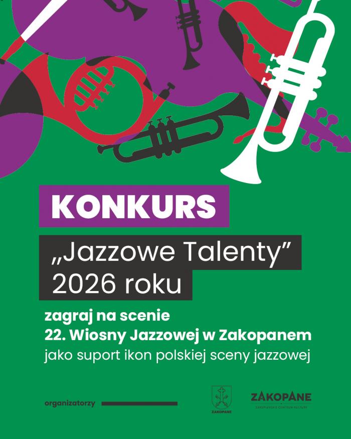 Konkurs Jazzowe Talenty 2026 to propozycja dla artystów, którzy chcą, aby ich muzyka wybrzmiała w Zakopanem i została dostrzeżona przez profesjonalne środowisko oraz szeroką publiczność festiwalu. Organizatorem wydarzenia jest Miasto Zakopane oraz Zakopiańskie Centrum Kultury.