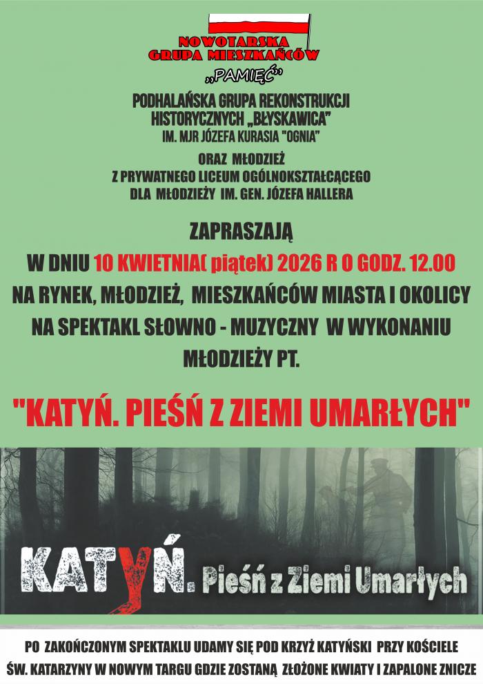 Po zakończeniu części artystycznej uczestnicy przejdą pod Krzyż Katyński przy kościele świętej Katarzyny w Nowym Targu. Tam zaplanowano złożenie kwiatów oraz zapalenie zniczy, w spokojnej, refleksyjnej atmosferze.