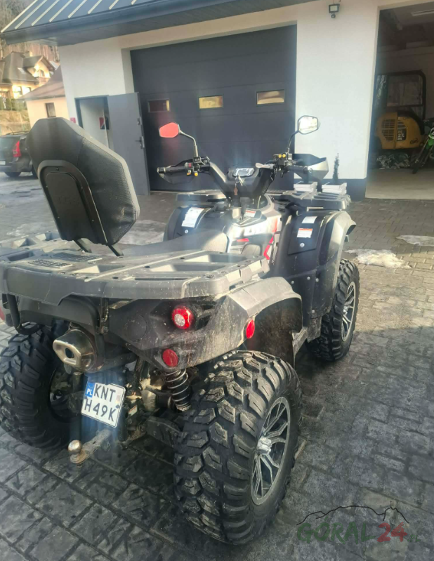 Maszyna wyposażona jest we wspomaganie kierownicy oraz blokady mostów zarówno z przodu, jak i z tyłu, co wpływa na lepsze właściwości terenowe i kontrolę podczas jazdy w trudniejszych warunkach. Quad sprawdzi się zarówno w użytkowaniu rekreacyjnym, jak i przy pracach terenowych.