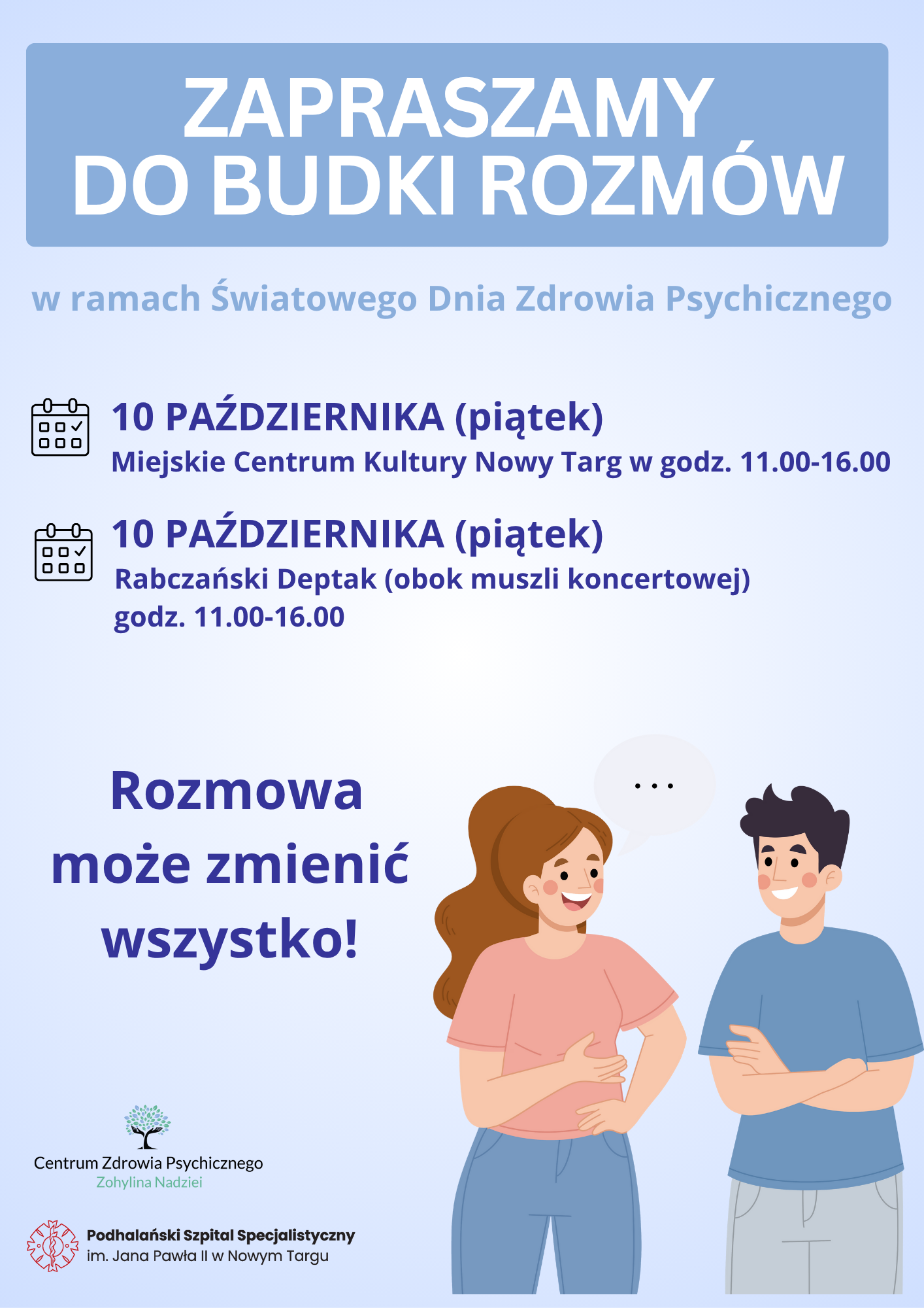 Z okazji Światowego Dnia Zdrowia Psychicznego Podhalański Szpital zaprasza wszystkich do wyjątkowej inicjatywy – Budki Rozmów.
