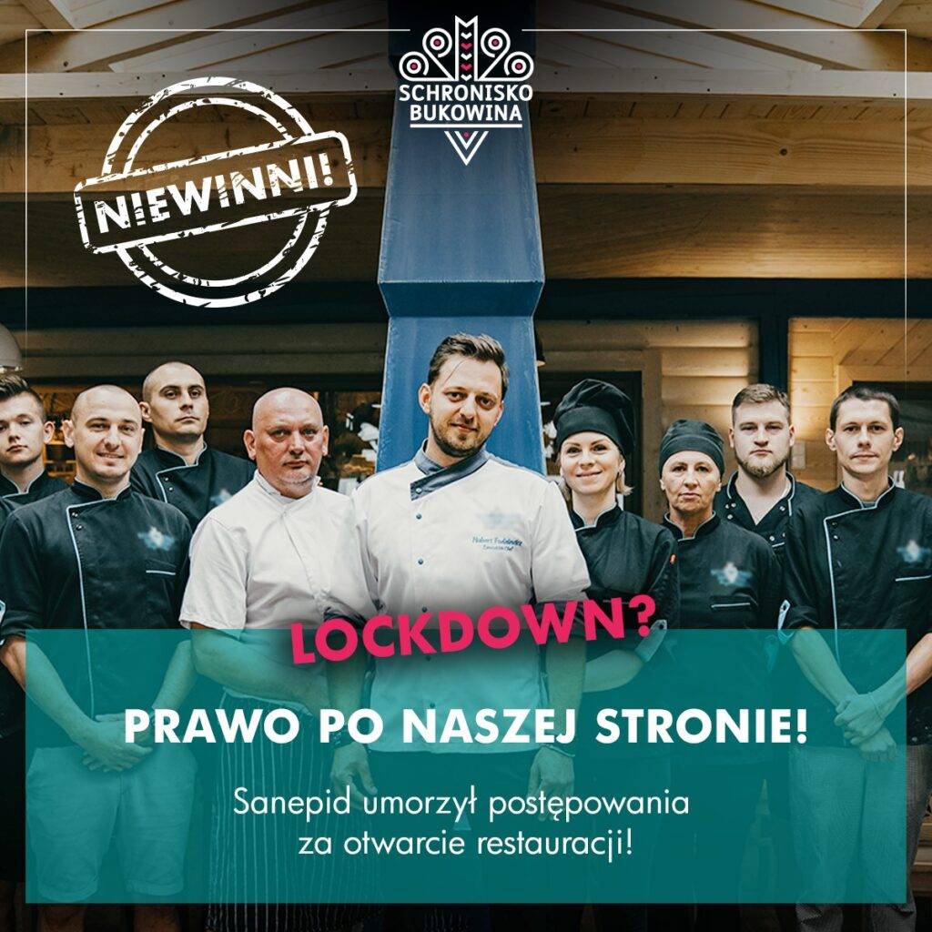 - Zwycięstwo! Kolejny triumf prawa! Sanepid właśnie umorzył 5 otwartych postępowań, którymi niepokoił nas w czasie nielegalnego lockdownu. Nie musimy już się martwić zapłatą ogromnej kary w wysokości minimum 150 tysięcy złotych - pinformował na firmowym profilu FB właściciel restauracji i sklepu Schronisko Bukowina