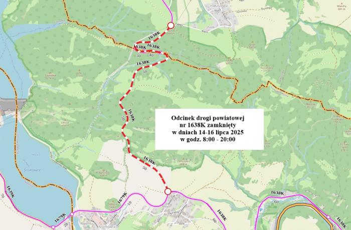 Firma ZIBUD Sp. z o.o. Sp. k. z Kamienicy, działająca na zlecenie Powiatowego Zarządu Dróg w Nowym Targu, informuje o planowanym całkowitym zamknięciu odcinka drogi powiatowej nr 1638K w miejscowości Sromowce Wyżne. Utrudnienia potrwają od poniedziałku 14 lipca do środy 16 lipca 2025 roku w godzinach od 8:00 do 20:00.