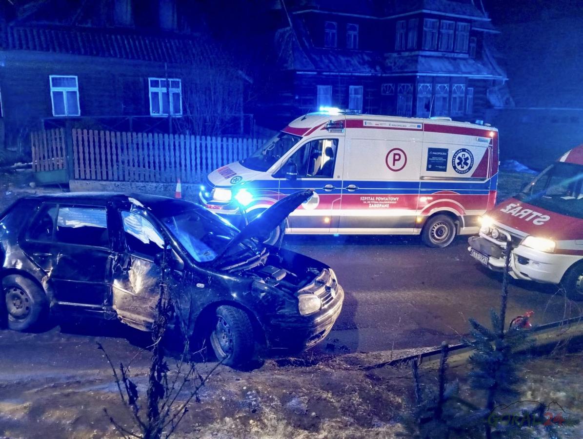 Nocą z soboty na niedzielę służby ratunkowe zostały wezwane do wypadku drogowego w miejscowości Suche w gminie Poronin.
