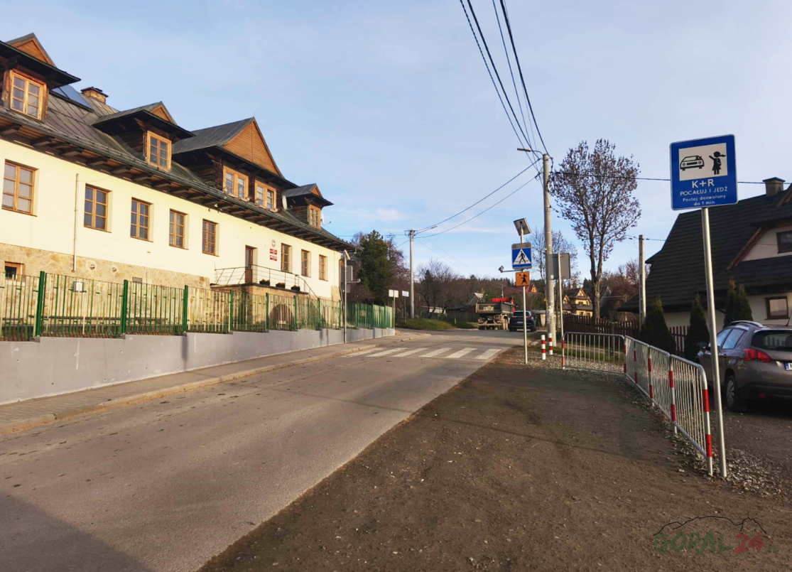 Nasz czytelnik zwrócił uwagę na ciekawe rozwiązanie w Dzianiszu w gminie Kościelisko. Naprzeciw Szkoły Podstawowej im. Kurierów Tatrzańskich, wzdłuż drogi powiatowej przebiegającej przez centrum wsi, powstała strefa „Pocałuj i jedź”, oznaczona skrótem K+R. Zgodnie z zasadami postój w tym miejscu jest dozwolony tylko przez jedną minutę. To wystarczający czas, by rodzic mógł zatrzymać samochód, pożegnać dziecko i pozwolić mu bezpiecznie przejść przez pasy wprost do szkoły.