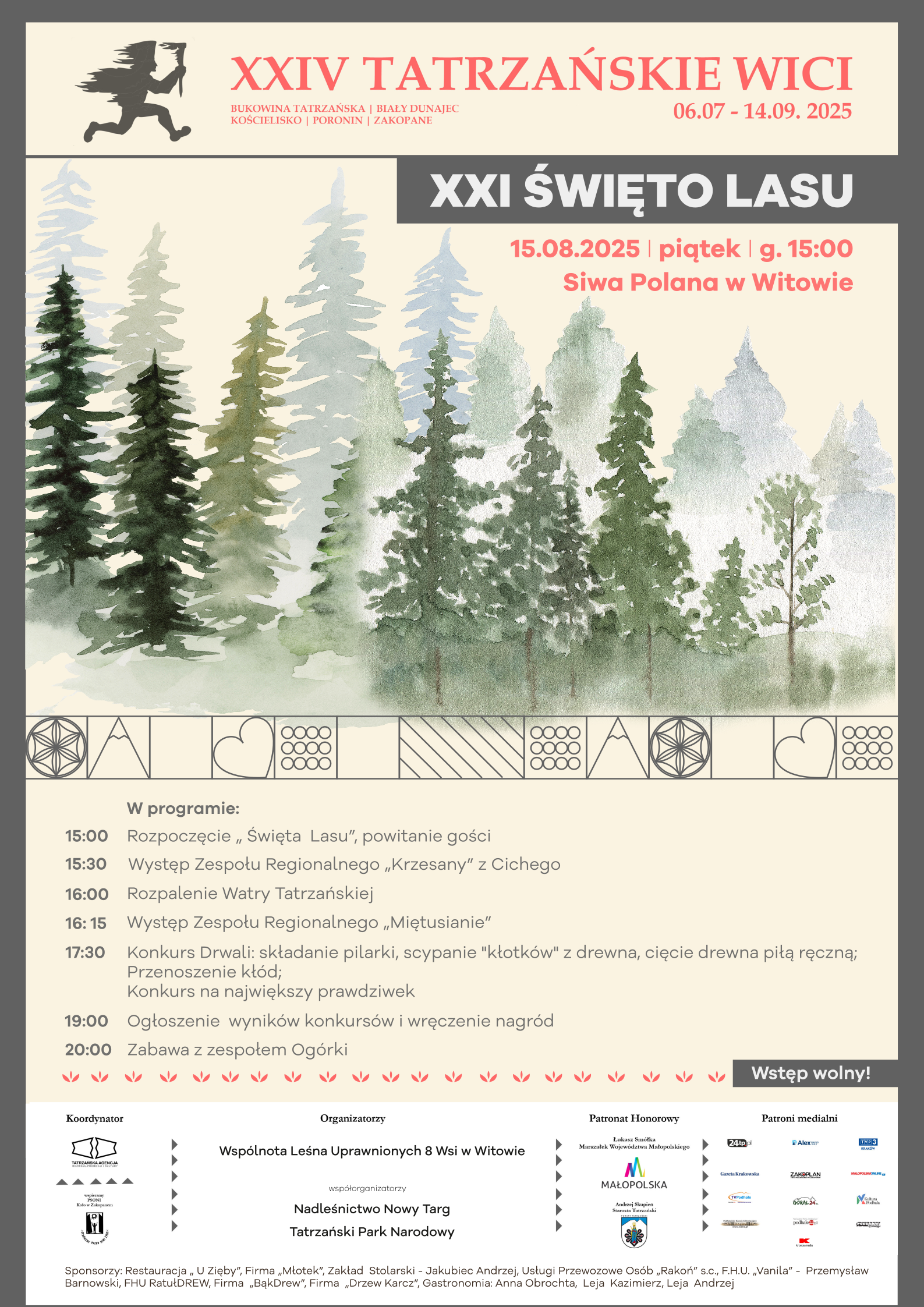 W dniu 15 sierpnia 2025 roku na Siwej Polanie, położonej u wylotu Doliny Chochołowskiej w Witowie, odbędzie się coroczne wydarzenie „Święto Lasu” w ramach XII Tatrzańskich Wici.
