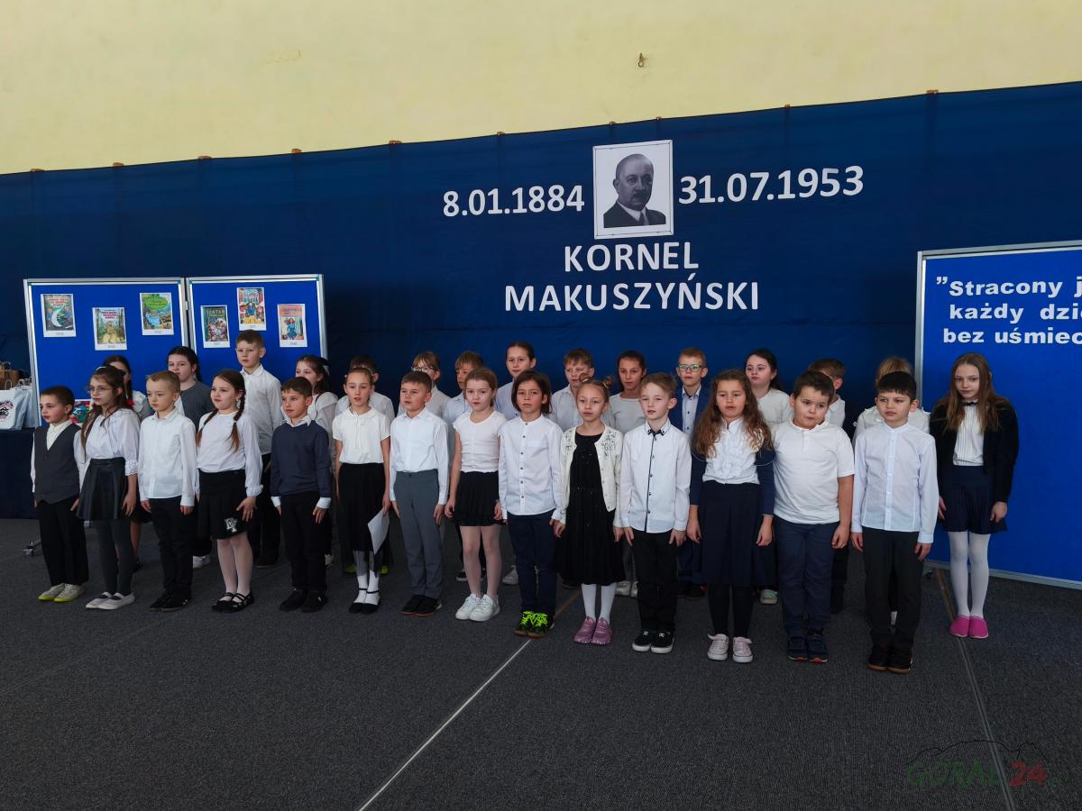 Szczególnym punktem uroczystości było przedstawienie przygotowane przez uczniów klas drugich. Dzieci w ciekawy i przystępny sposób zaprezentowały życiorys Kornela Makuszyńskiego, a także przypomniały najbardziej znanych bohaterów jego książek. Na scenie pojawili się Jacek i Placek, którzy ukradli księżyc, diabełek Piszczałka, Panna z mokrą głową, panna Ewa, Basia, Małpka Fiki Miki, Smok Wawelski i Koziołek Matołek. Wszyscy goście przypomnieli sobie znane im z dzieciństwa postacie.