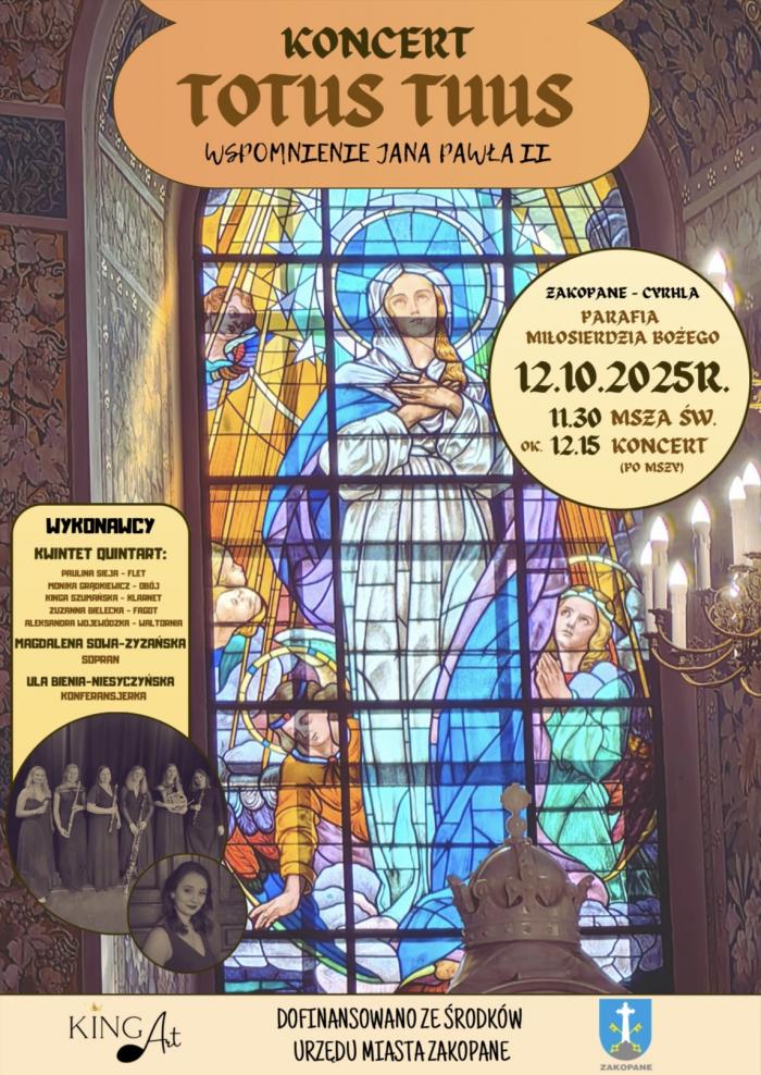 To spotkanie o charakterze słowno-muzycznym, które pozwoli nie tylko na wysłuchanie fragmentów homilii Jana Pawła II, ale także na głębsze zanurzenie się w duchowość maryjną, która była tak bliska Jego sercu. W programie znajdą się również utwory o tematyce maryjnej oraz dzieła wybitnych kompozytorów, takich jak J.S. Bach, A. Vivaldi czy G. Fauré.