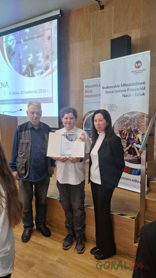 Uczeń znalazł się w gronie najlepszych młodych matematyków w regionie, uzyskując jednocześnie tytuł finalisty Małopolskiego Konkursu Prac Matematycznych.