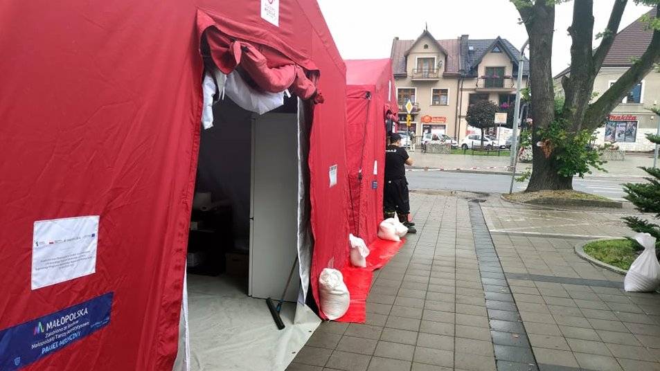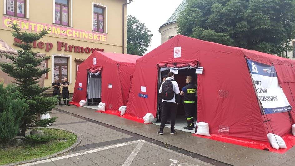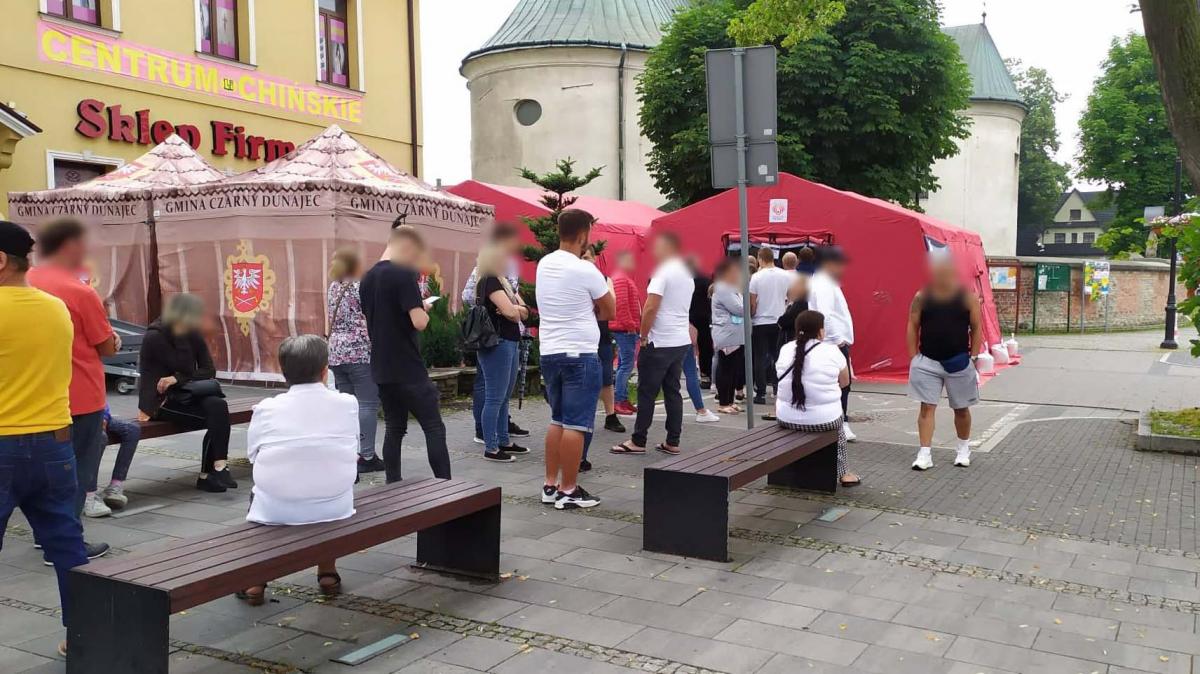 Mimo burzowej pogody nie zabrakło chętnych do szczepienia w plenerze w Czarnym Dunajcu.
