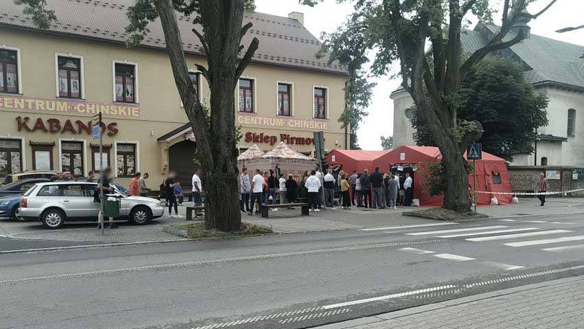 Punkt szczepień został zorganizowany na Rynku tuż obok miejscowego kościoła i jednego z supermarketów.