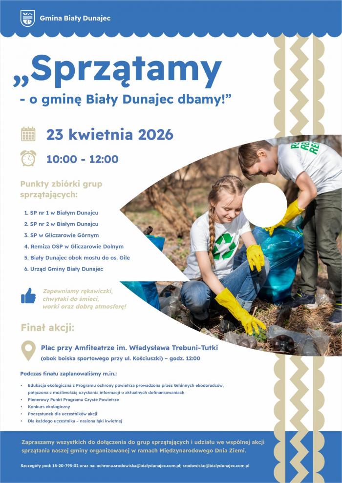 Zbiórki grup sprzątających wyznaczono w kilku punktach na terenie gminy Białego Dunajca. Uczestnicy mogą dołączyć między innymi przy szkołach podstawowych w Białym Dunajcu, w Glinczarowie Górnym czy przy remizie OSP w Glinczarowie Dolnym. Nie zabraknie też miejsca przy urzędzie gminy oraz w okolicach mostu prowadzącego do osiedla Gile.