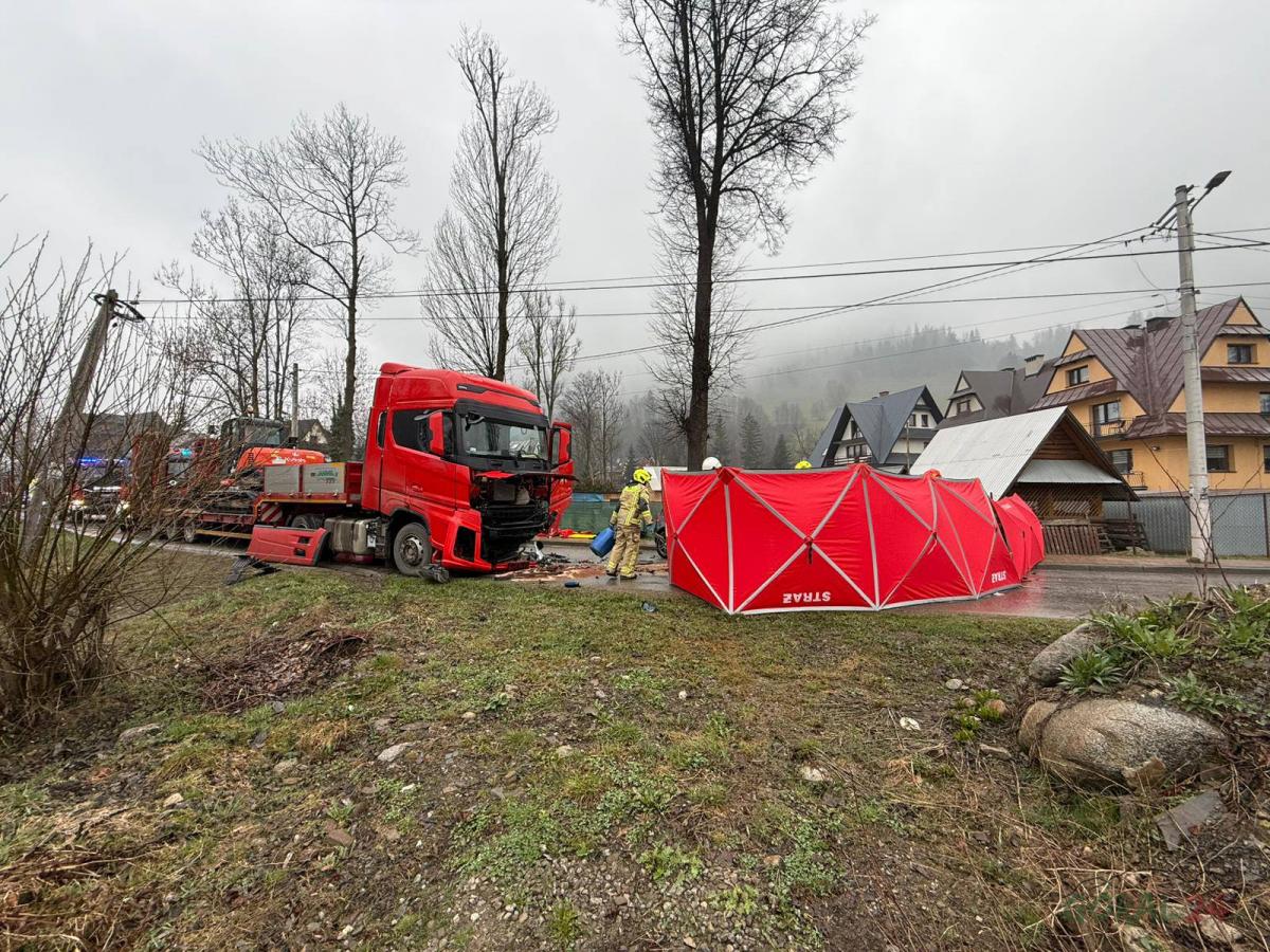 Na Ustupie w Zakopanem doszło do poważnego wypadku drogowego z udziałem samochodu osobowego i pojazdu ciężarowego. W wyniku zderzenia ucierpiał ok. 30-letni kierowca osobówki.