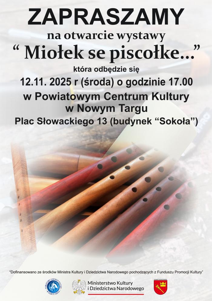 Powiatowe Centrum Kultury w Nowym Targu zaprasza na wyjątkową wystawę podsumowującą projekt "Miołek se piscołke...", który został zrealizowany dzięki dofinansowaniu ze środków Ministra Kultury i Dziedzictwa Narodowego pochodzących z Funduszu Promocji Kultury.