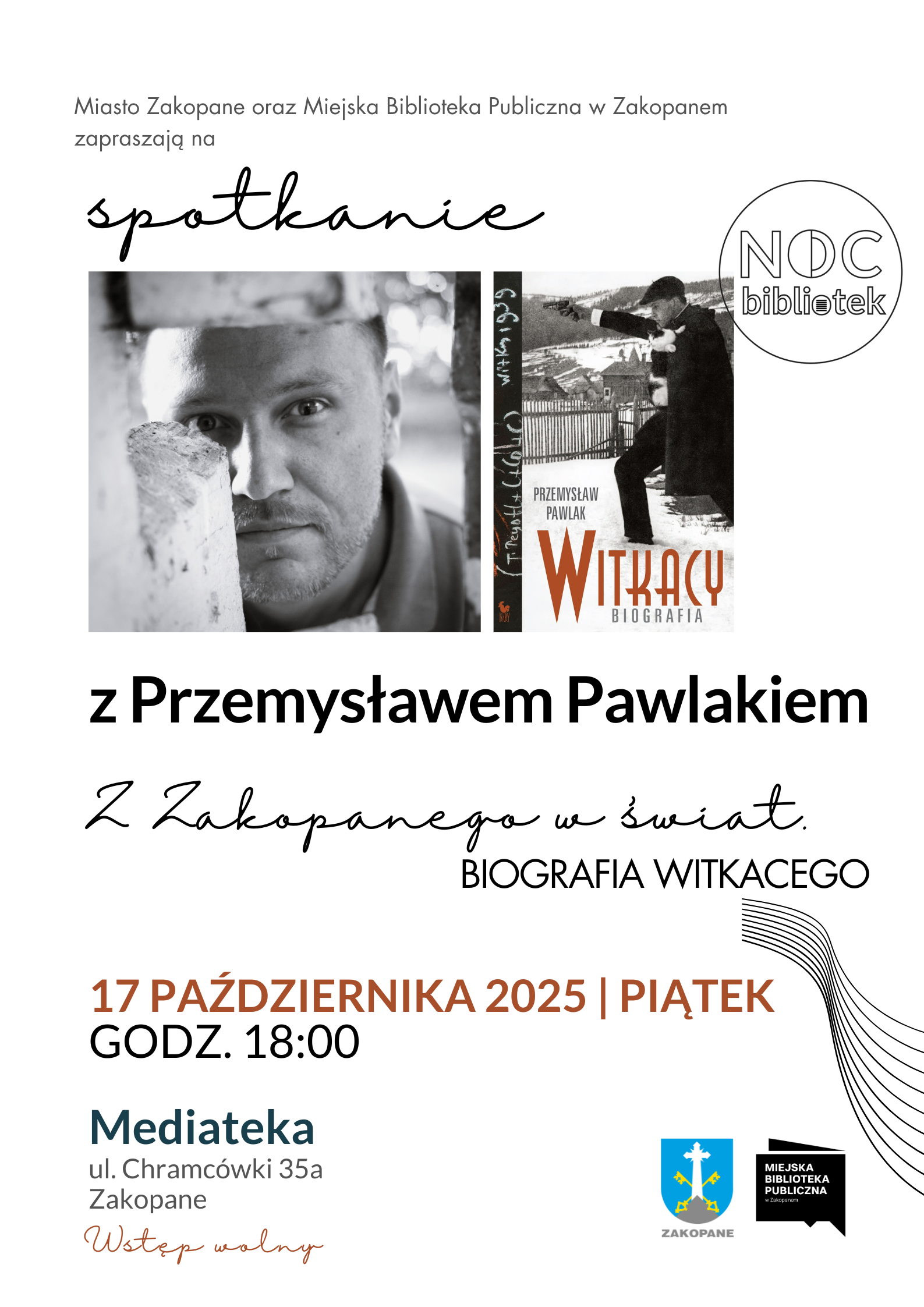 W ramach wydarzenia w Miejskiej Bibliotece im. Stefana Żeromskiego w Zakopanem odbędzie się spotkanie z Przemysławem Pawlakiem, autorem książki „Witkacy. Biografia”, która rzuca nowe światło na życie i twórczość jednego z najbardziej intrygujących artystów XX wieku. Prezentuje w niej zarówno artystę, jak i filozofa, dramatopisarza i malarza, osadzając jego życie i dzieło w szerokim kontekście społecznym, politycznym i intelektualnym epoki.