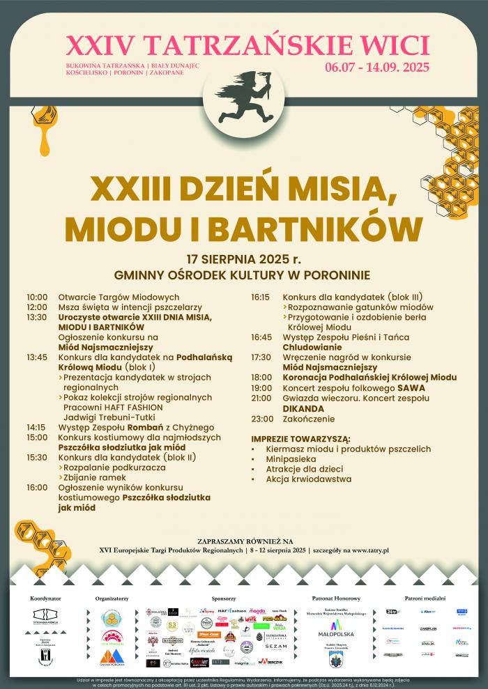 Dzień Misia, Miodu i Bartników to doskonała okazja do poznania tradycji pszczelarstwa i bartnictwa, spróbowania regionalnych przysmaków oraz integracji mieszkańców i turystów w wyjątkowej, podhalańskiej atmosferze.