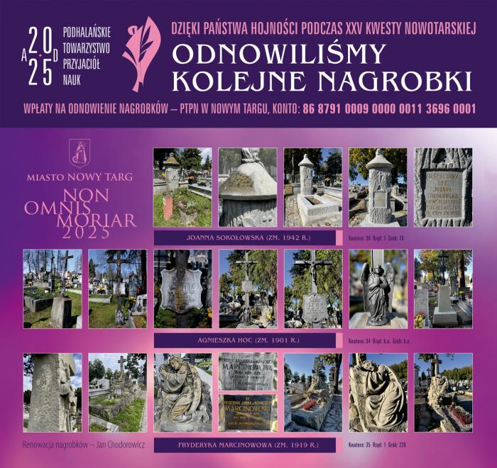 Podhalańskie Towarzystwo Przyjaciół Nauk w Nowym Targu wraz z Burmistrzem Miasta zapraszają mieszkańców i gości do udziału w XXVI Kweście Nowotarskiej, która odbędzie się w sobotę 1 listopada 2025 roku na starym cmentarzu w Nowym Targu.