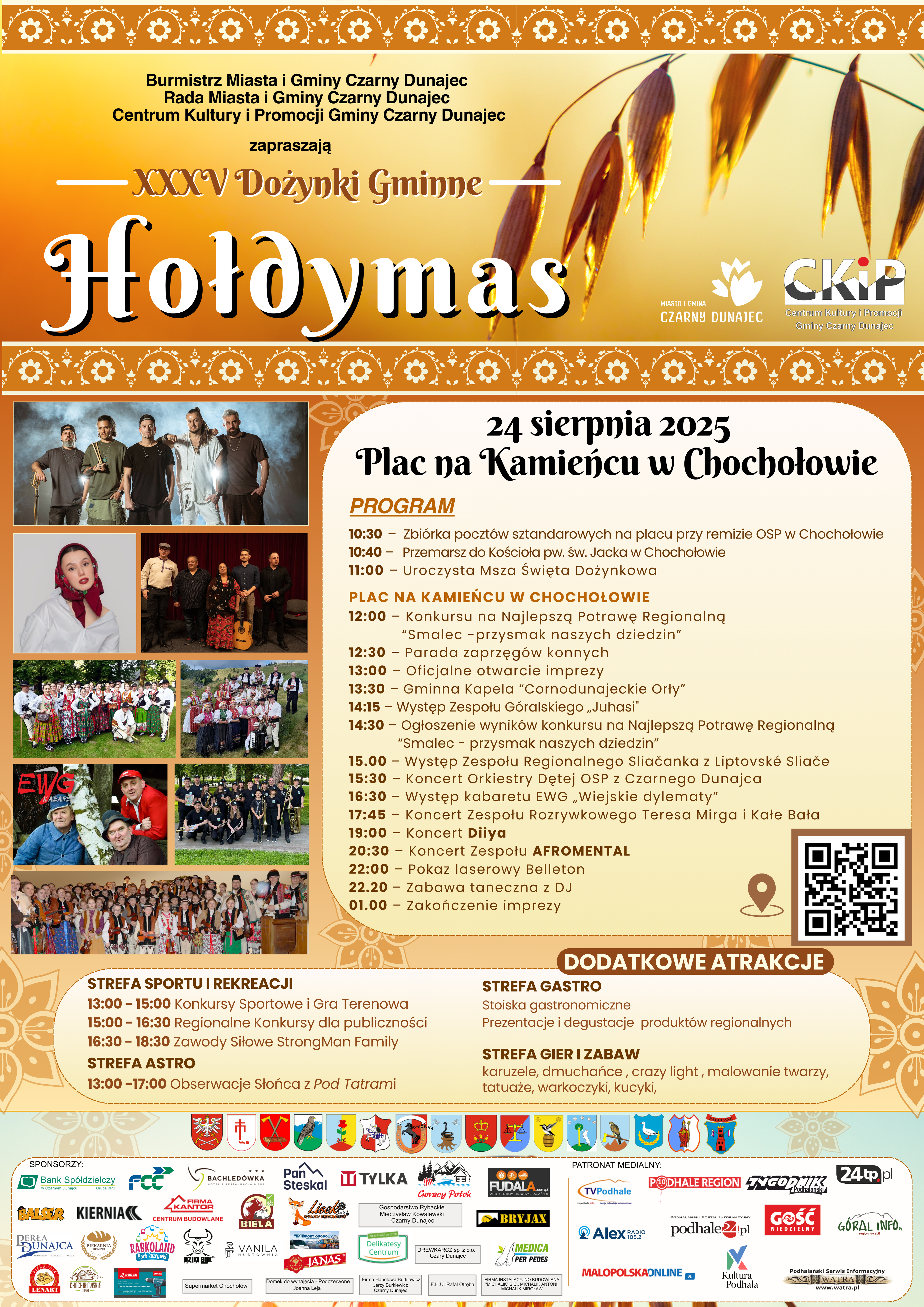 W niedzielę, 24 sierpnia na Placu na Kamieńcu w Chochołowie, mieszkańcy Miasta i Gminy Czarny Dunajec oraz goście z całej okolicy spotkają się, aby wspólnie celebrować XXXV Gminne Dożynki Hołdymas.