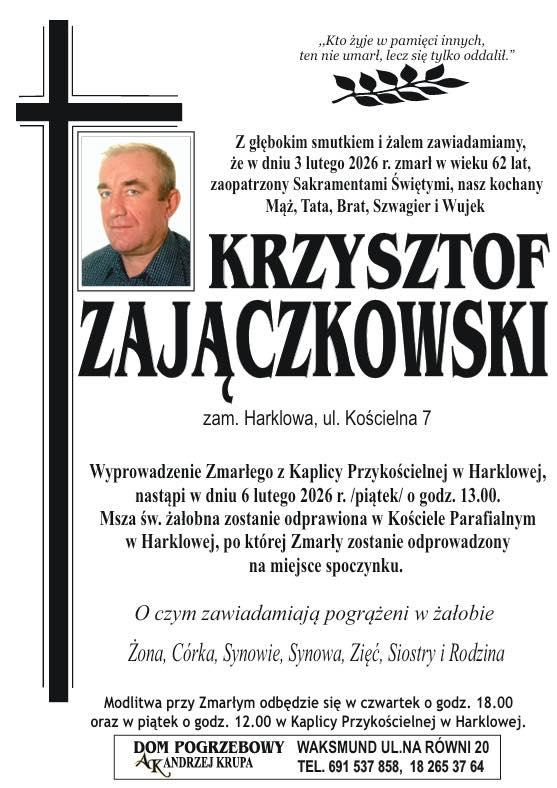 W wieku 62 lat zmarł Krzysztof Zajączkowski, zasłużony druh Ochotniczej Straży Pożarnej w Harklowej.