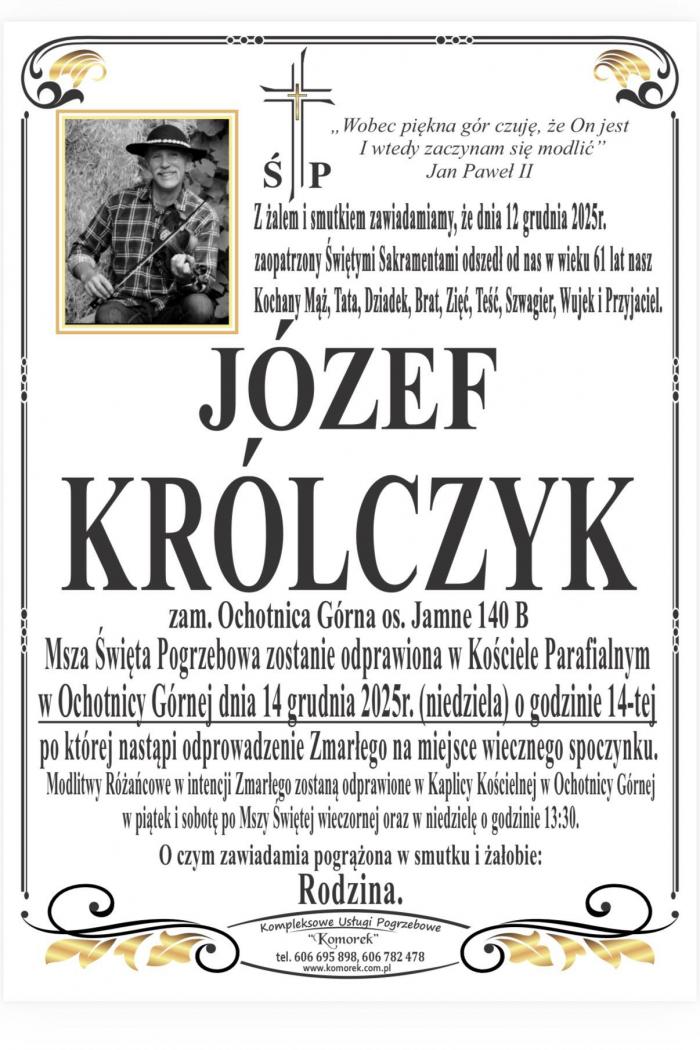 W wieku 61 lat zmarł Józef Królczyk „Spod Magurki”. Informację o jego śmierci przekazał Gorczański Oddział Związku Podhalan w Ochotnicy Górnej, którego był prezesem w latach 2000–2008. W lokalnej społeczności od lat uchodził za osobę głęboko związaną z tradycją i kulturą góralską.