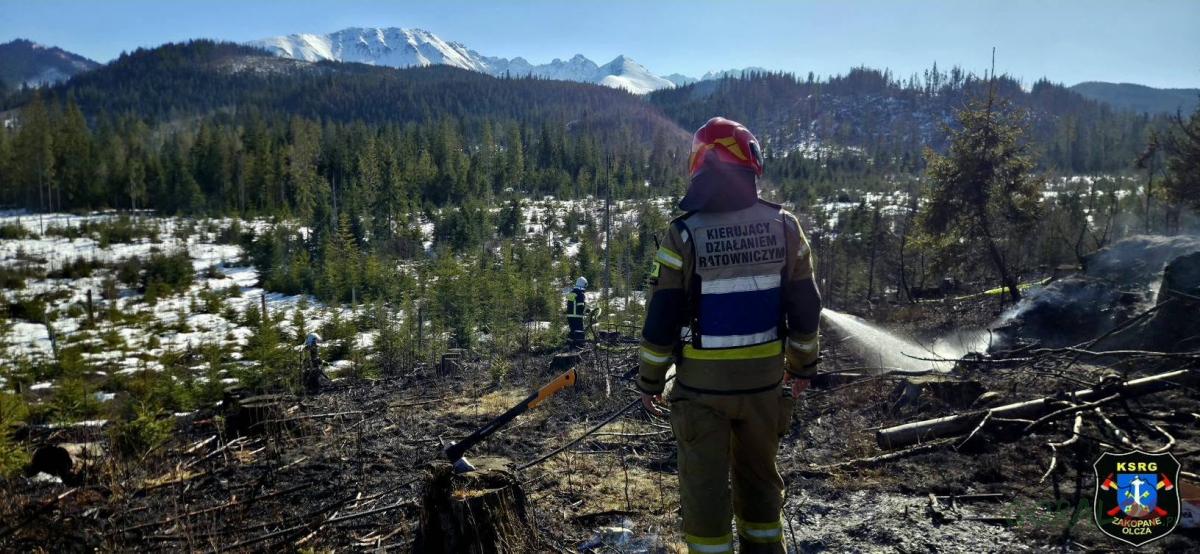 Zdjęcia Akcja strażacka w Murzasichlu - pożar trawy w sąsiedztwie zabudowań - fotorelacja