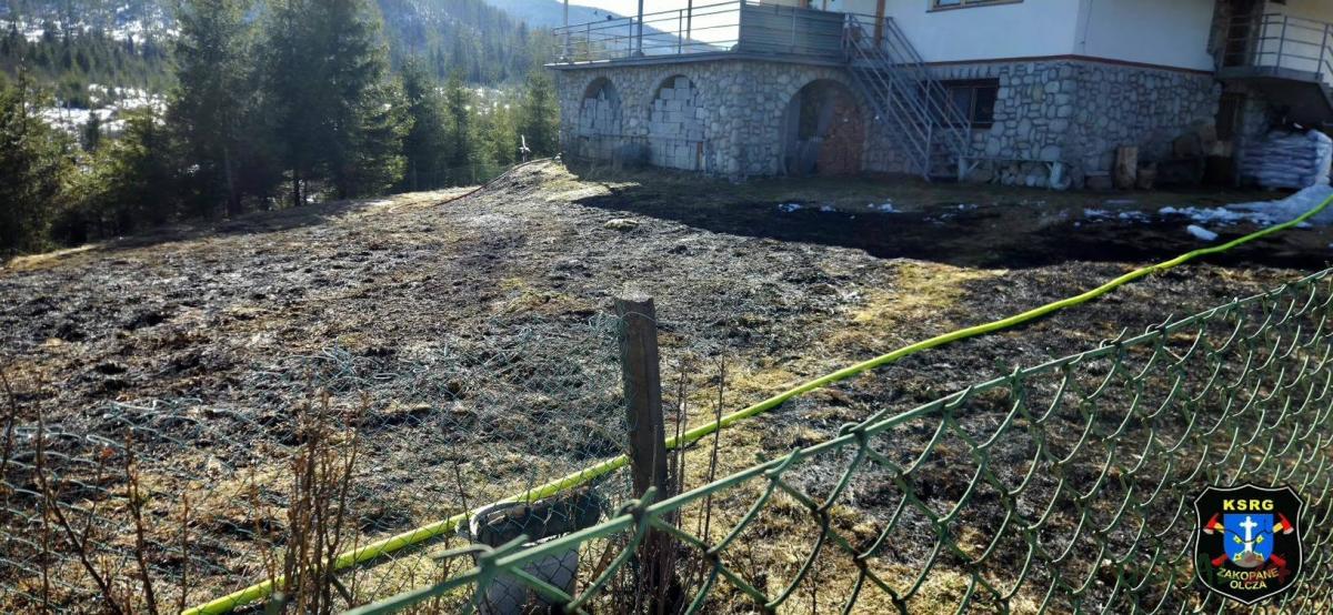 Akcja strażacka w Murzasichlu - pożar trawy w sąsiedztwie zabudowań