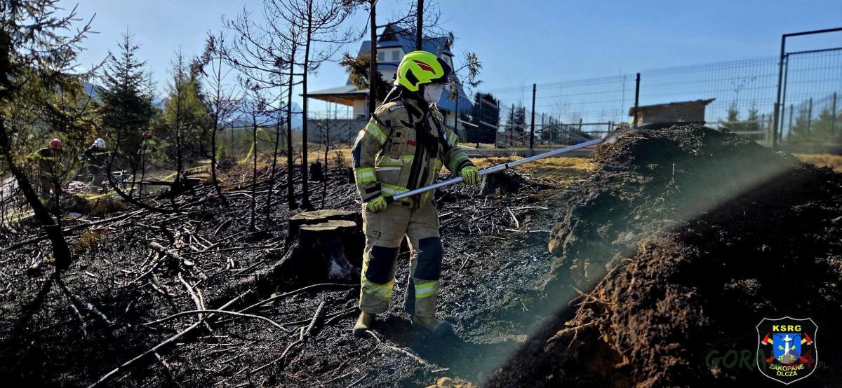 Akcja strażacka w Murzasichlu - pożar trawy w sąsiedztwie zabudowań