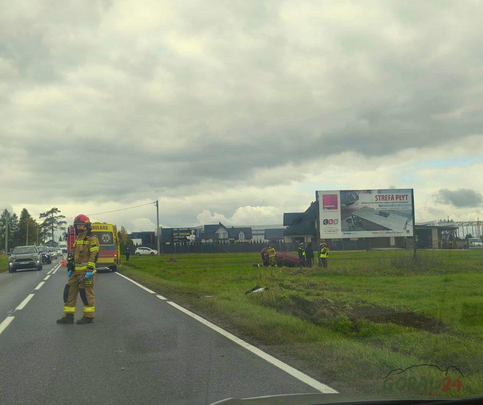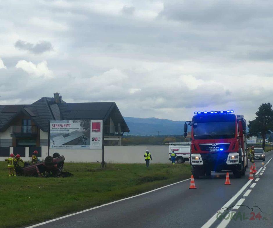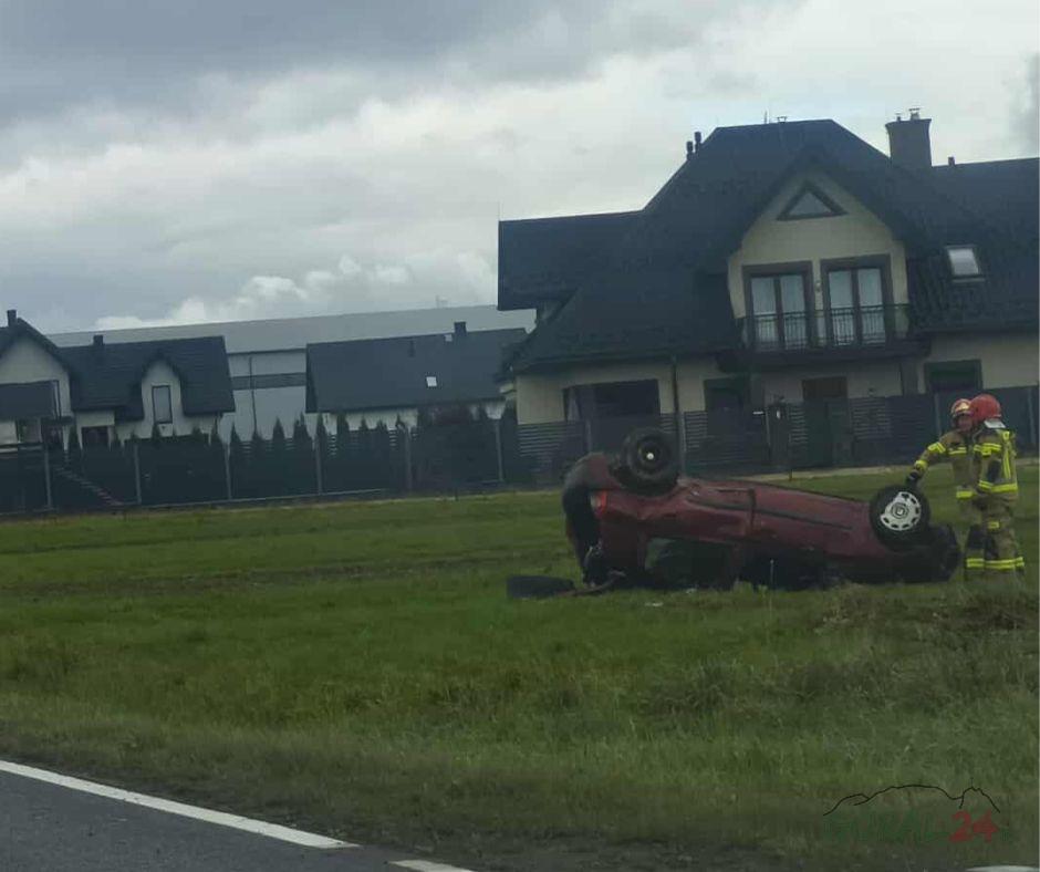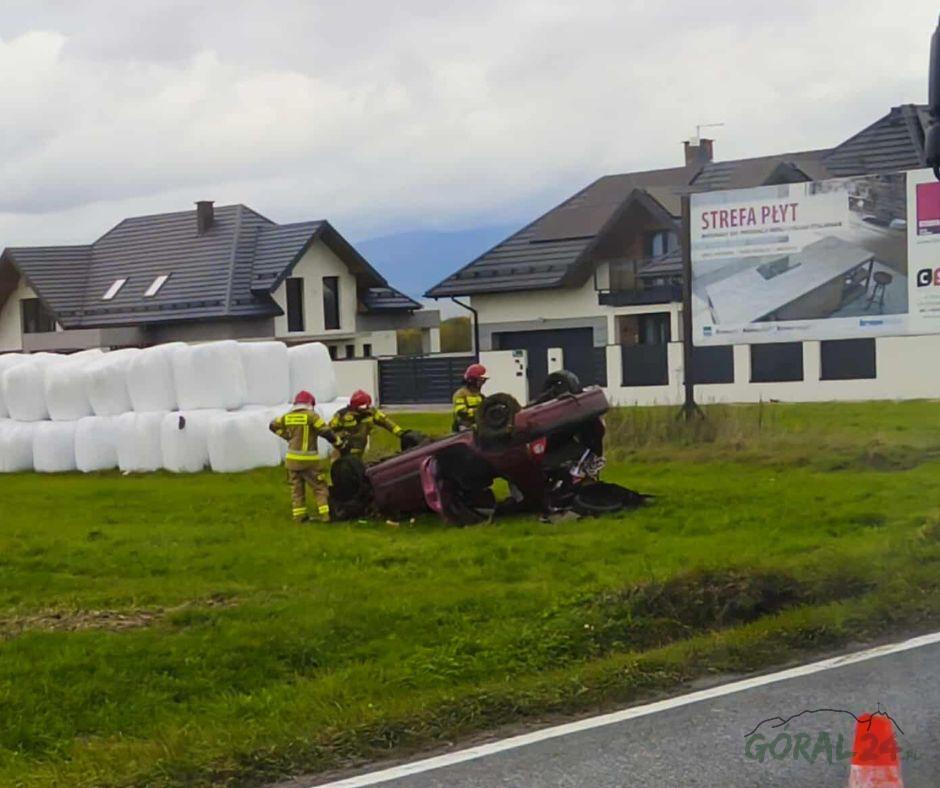 Zdjęcia Dachowanie samochodu osobowego w Rogoźniku - fotorelacja
