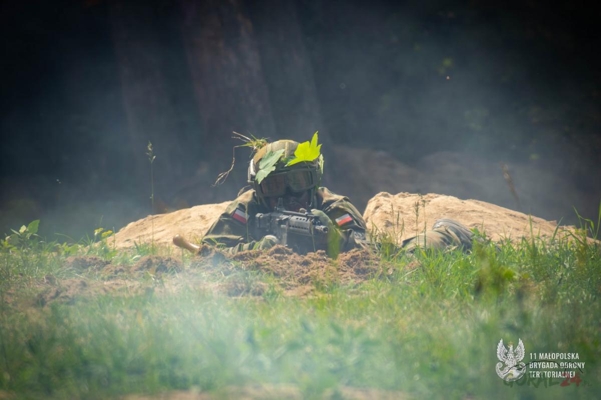 Zdjęcia przedstawiające szkolenia wojskowe organizowane przez Małopolską Brygadę Obrony Terytorialnej w 2025 roku. Program cieszy się coraz większym zainteresowaniem, uczestnicy zdobywają nowe umiejętności oraz wsparcie finansowe. Ukończenie kursu i złożenie przysięgi to szansa na jednorazowe wynagrodzenie oraz możliwość służby w systemie rotacyjnym. Udział w szkoleniu wymaga skontaktowania się z rekruterem i złożenia wniosku przez stronę internetową. Zaleca się zabranie podstawowego wyposażenia osobistego na zajęcia. Mundur, obuwie taktyczne i wyposażenie wojskowe uczestnicy otrzymują na miejscu.