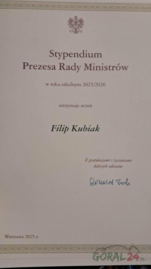 Prestiżowe wyróżnienie dla licealisty z Nowego Targu