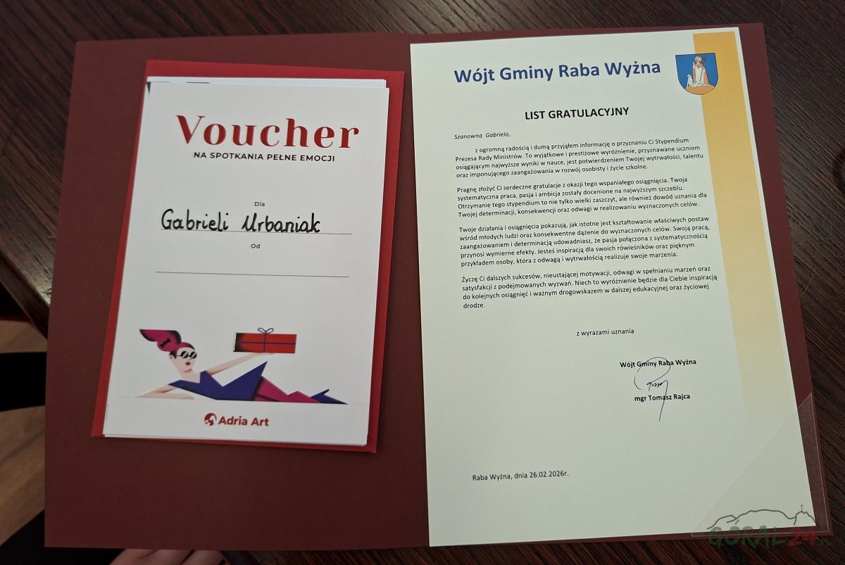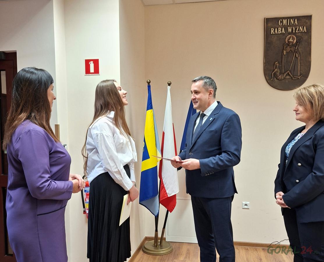 Gabriela Urbaniak po zdobyciu stypendium Prezesa Rady Ministrów uhonorowana podczas spotkania w Urzędzie Gminy Raba Wyżna