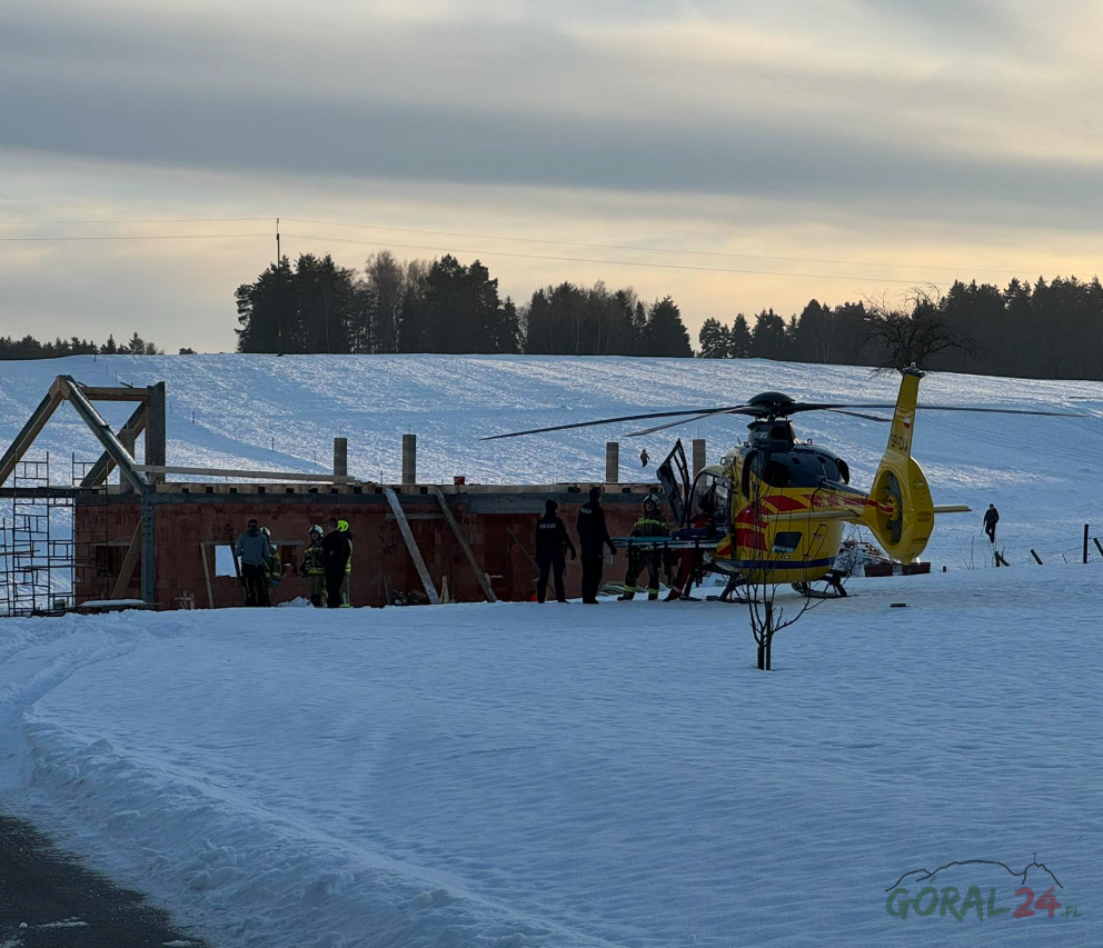 Groźny wypadek na budowie w Skawie - nieprzytomnego robotnika przetransportowano śmigłowcem do szpitala